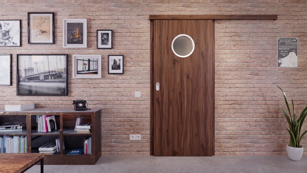 Trwałe drzwi przesuwne ProLine w alpejskim dębie z solidną płytą pełnoobwodową: