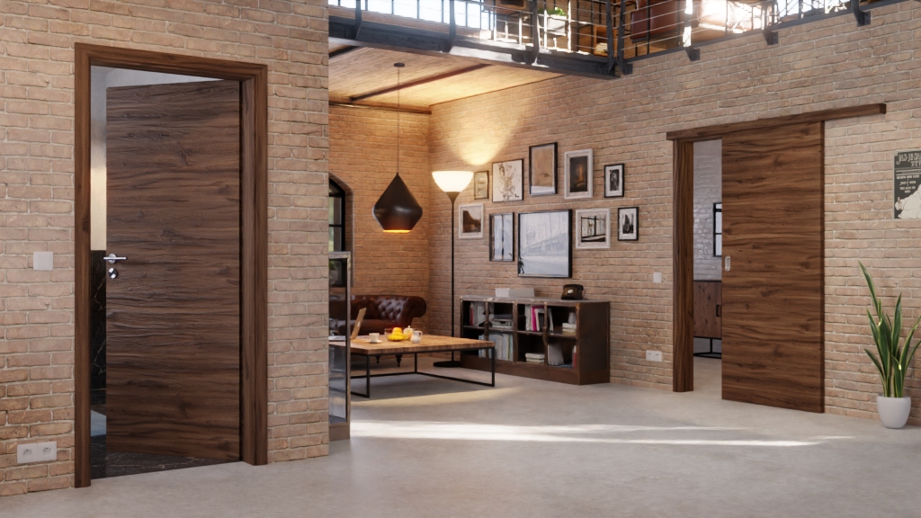 Trwałe drzwi przesuwne ProLine w alpejskim dębie poziomym z solidną płytą wiórową: