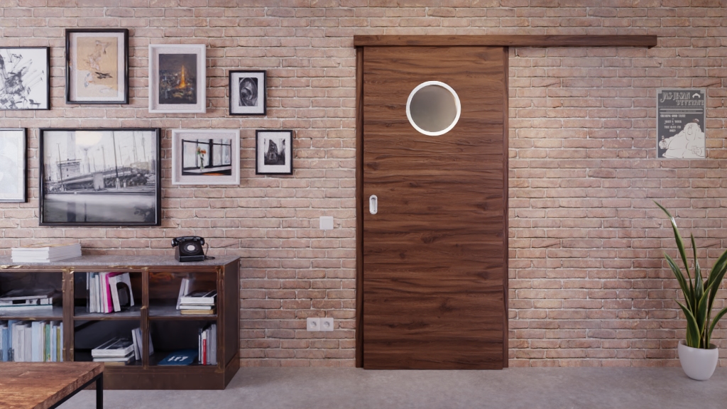 Trwałe drzwi przesuwne ProLine w alpejskim dębie w poziomie, w tym płyta pełna, która zapewnia stabilność: