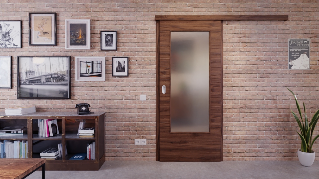 Trwałe drzwi przesuwne ProLine w alpejskim dębie poziomym, w tym płyta pełna, która zapewnia stabilność: