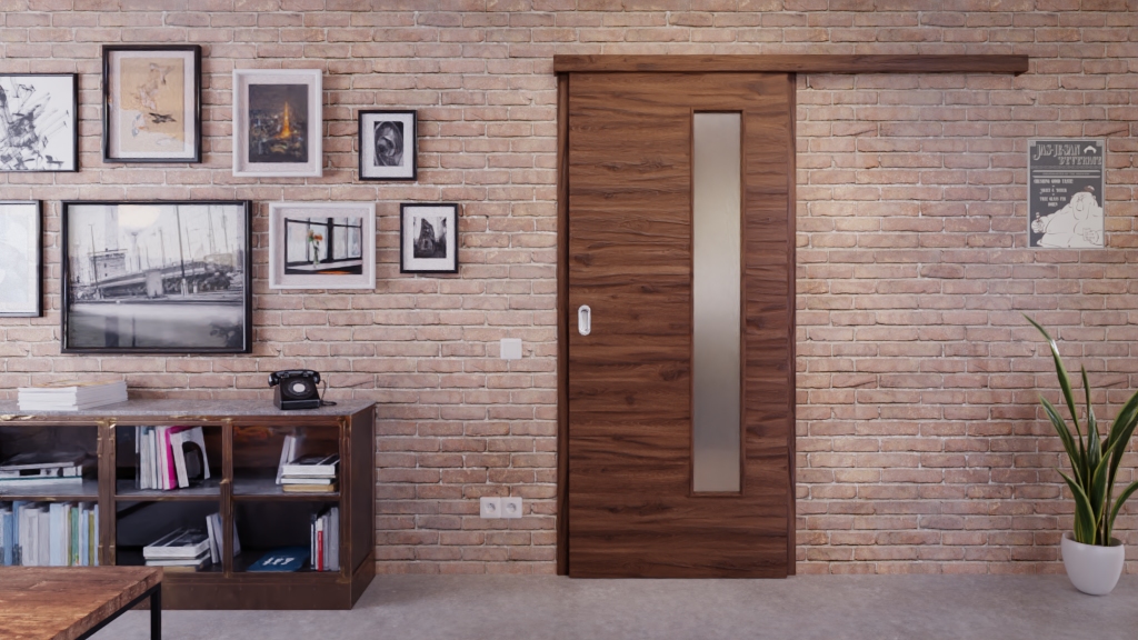 Sprytne drzwi przesuwne LA-24 w kolorze dąb alpejski wzdłuż z rowkiem pod prowadnicę dolną