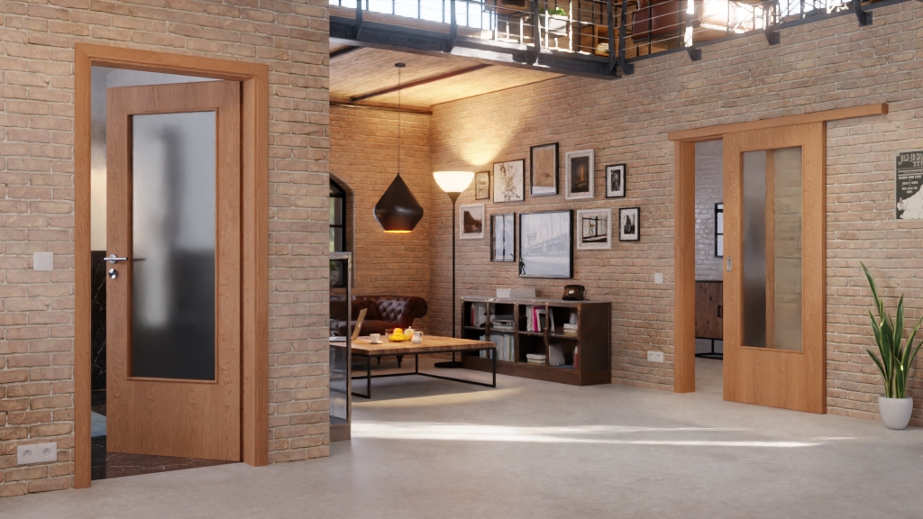 Drzwi pokryte fornirem drewnianym dla oszczędzającego miejsce domu: