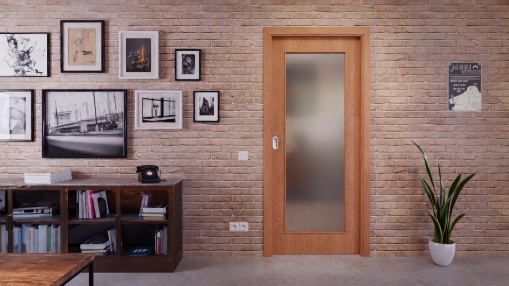 Drzwi przesuwne z okleiną z prawdziwego drewna z prowadnicą podłogową: