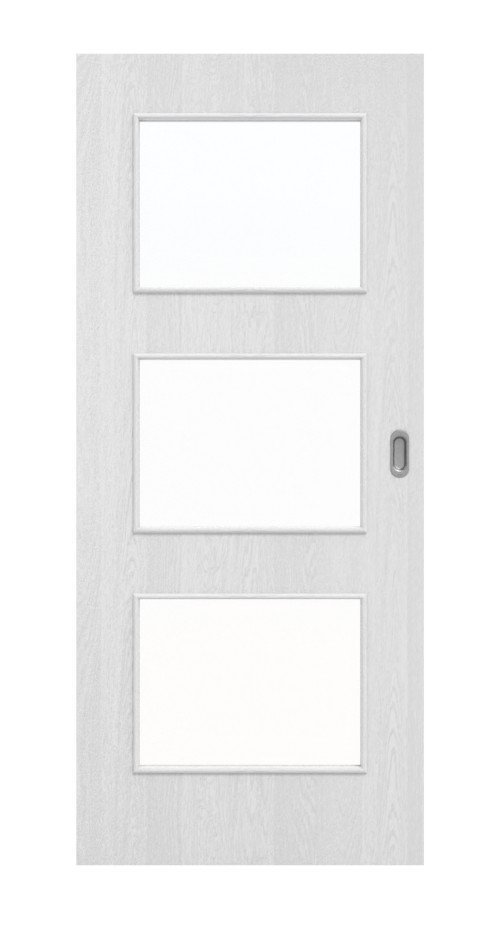 Trzy prostokątne okna świetlne rozciągają się niemal na całej powierzchni skrzydła drzwi przesuwnych. Dzięki temu wpada dużo światła, co przyczynia się do harmonijnej atmosfery.