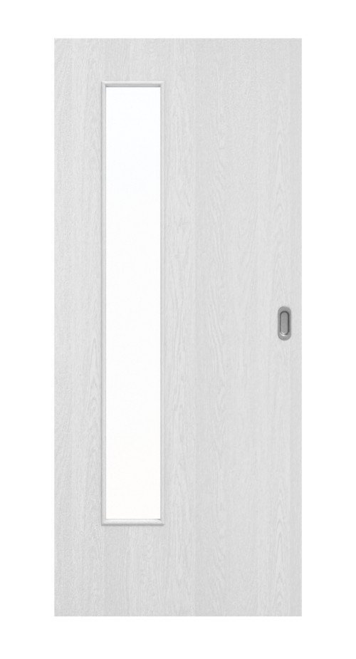 Trwałe drzwi przesuwne ProLine w białym dębie z pełną płytą, która zapewnia stabilność: