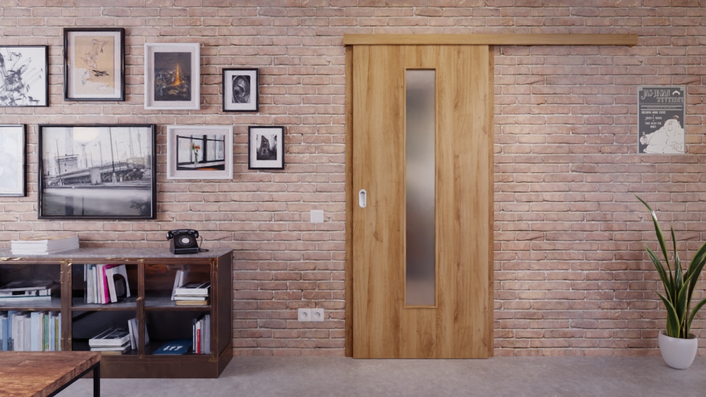 Robustne drzwi przesuwne ProLine w naturalnym dębie z płytą pełno-włóknistą jako rdzeń drzwi: