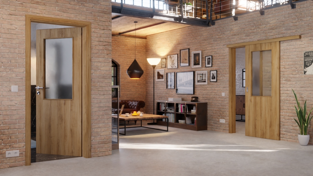 Codzienna, odporna na zużycie drzwi przesuwne ProLine w naturalnym dębie, w tym płyta pełnoobwodowa, która zapewnia stabilność:
