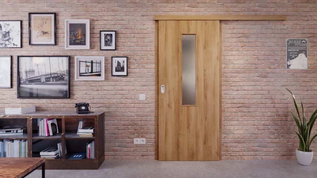 Robustne drzwi przesuwne ProLine w naturalnym dębie z płytą pełno-włóknistą jako rdzeń drzwi: