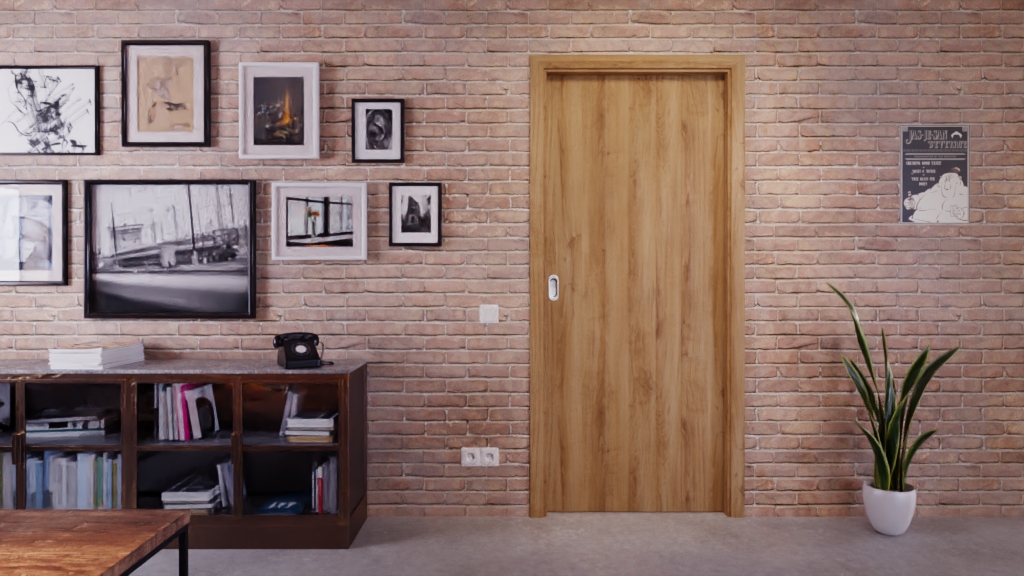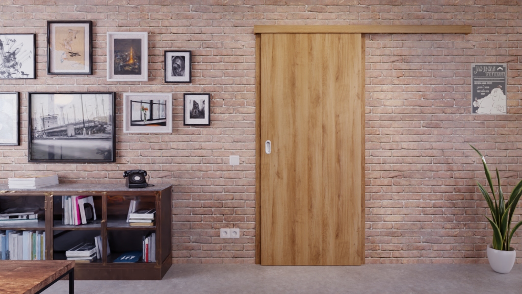 Robustne drzwi przesuwne ProLine w naturalnym dębie z płytą wiórową, która zapewnia stabilność: