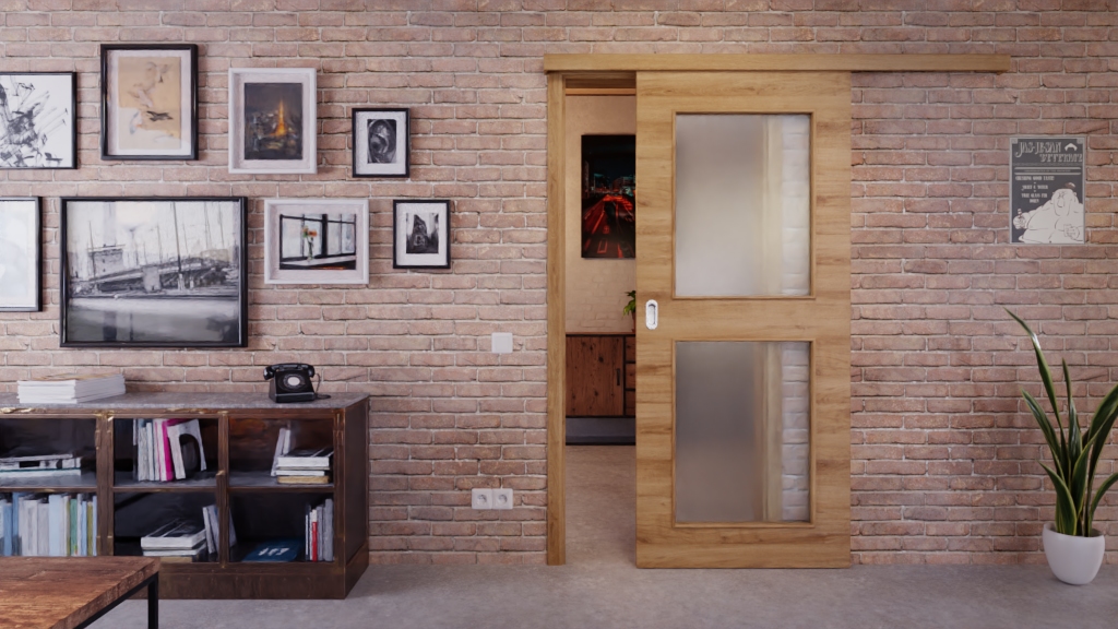 Trwałe drzwi przesuwne ProLine w naturalnym dębie w poziomie z wysokiej jakości płytą pełnoobwodową: