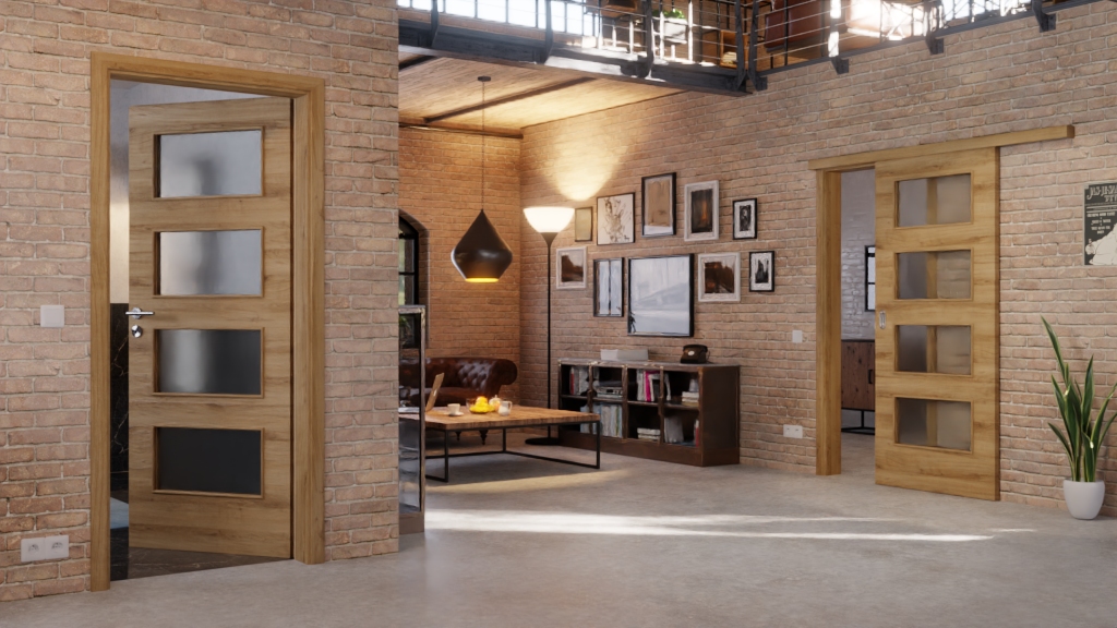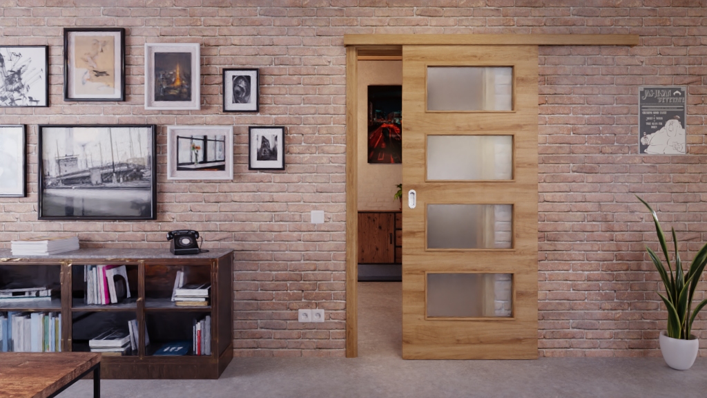 Trwałe drzwi przesuwne ProLine w dębie naturalnym w poziomie z płytą pełnoobwodową jako rdzeń drzwi: