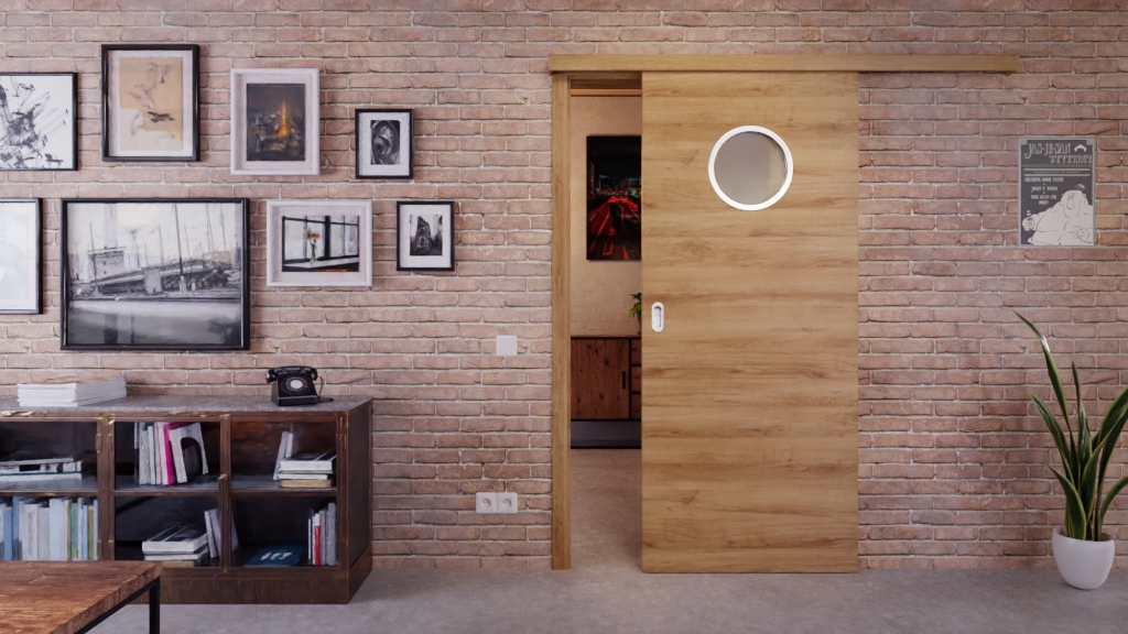 Trwałe drzwi przesuwne ProLine w naturalnym dębie poziomym z pełną płytą wiórową: