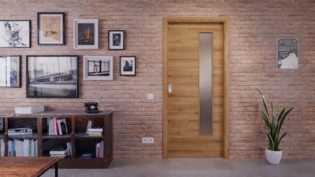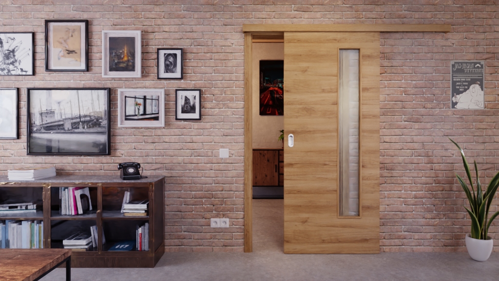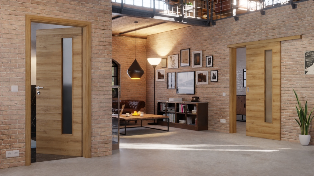 Trwałe drzwi przesuwne ProLine w naturalnym dębie w poziomie, w tym płyta pełnoobwodowa, która zapewnia stabilność: