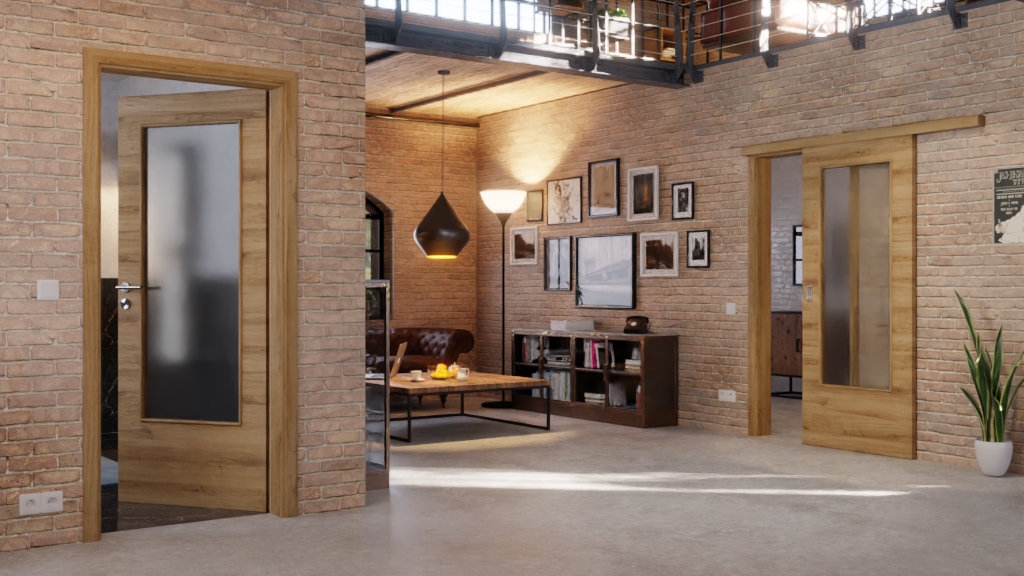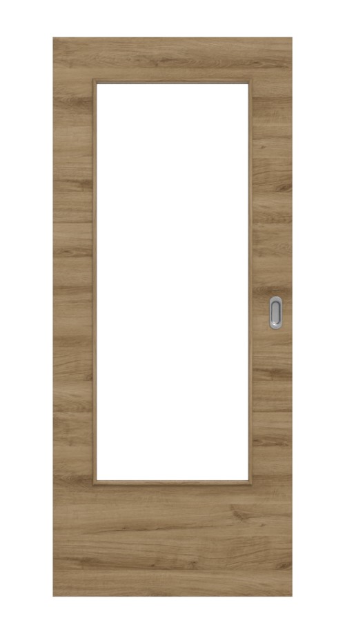 Trwałe drzwi przesuwne ProLine w naturalnym dębie w poziomie, w tym płyta pełna, która zapewnia stabilność: