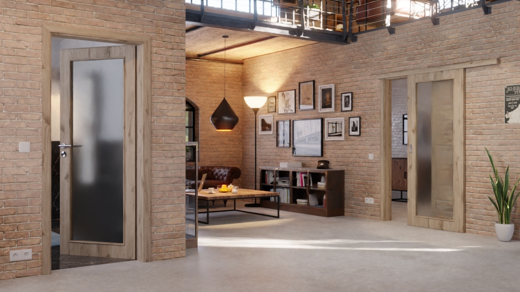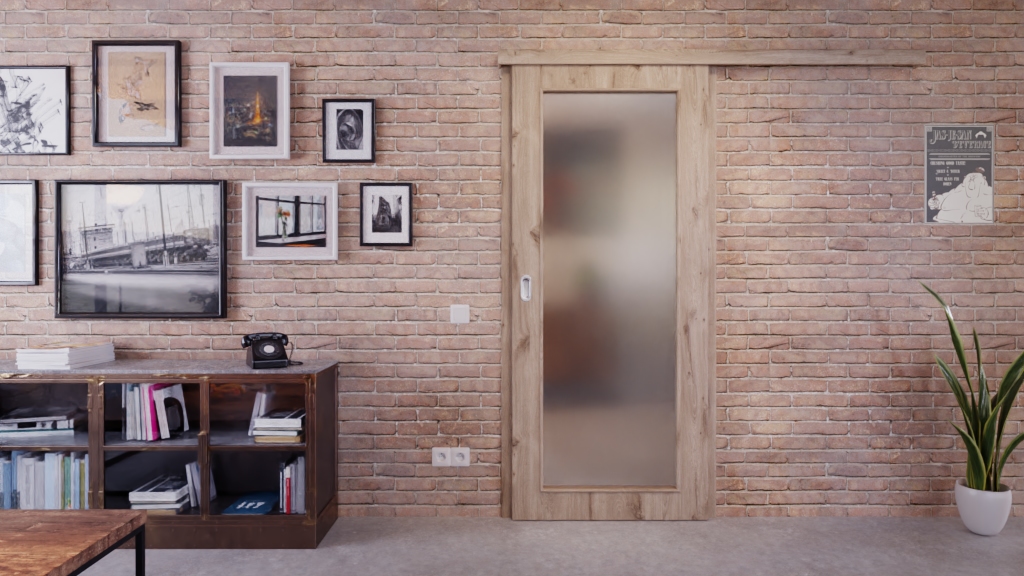 Trwałe drzwi przesuwne ProLine w dębie północnym z pełną płytą wiórową: