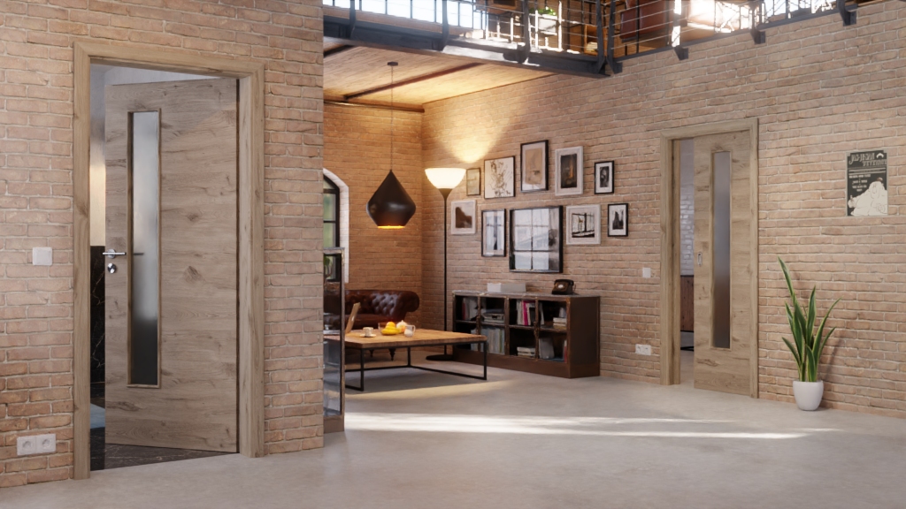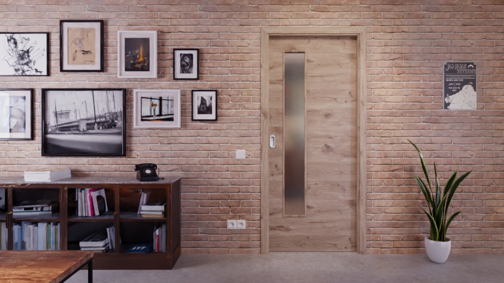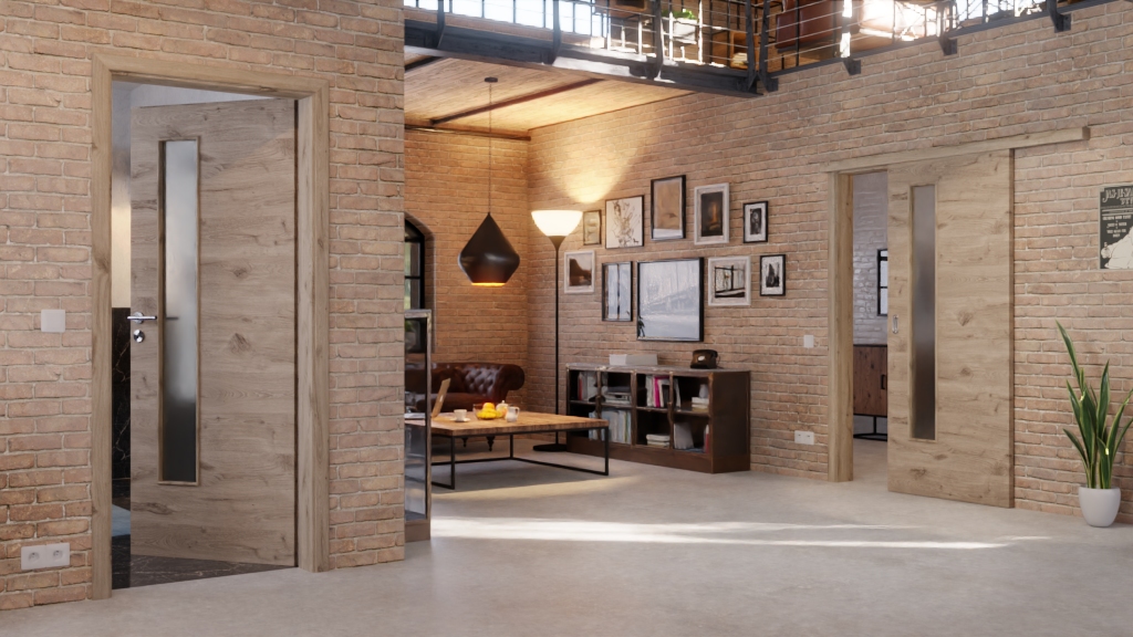 Trwałe drzwi przesuwne ProLine w dębie północnej w poziomie z płytą wiórową jako rdzeń drzwi: