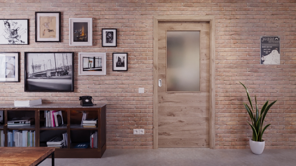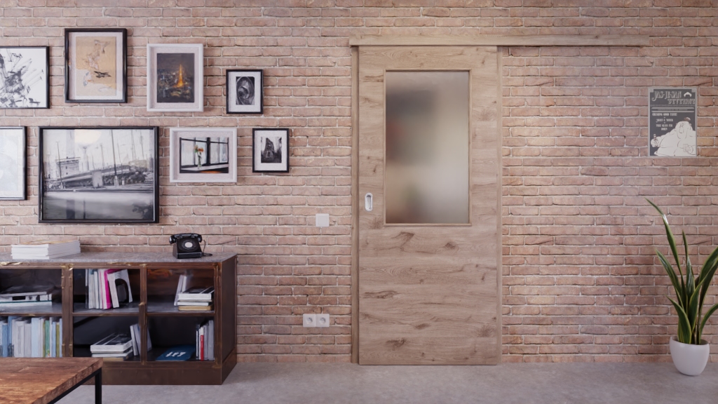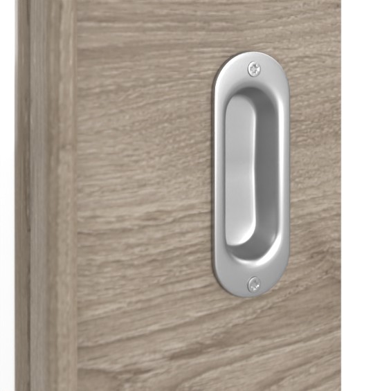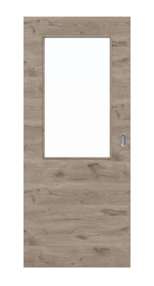 Przemyślane drzwi przesuwne LA-7 w kolorze dąb północny wzdłuż z uchwytem wpuszczanym muszlowym