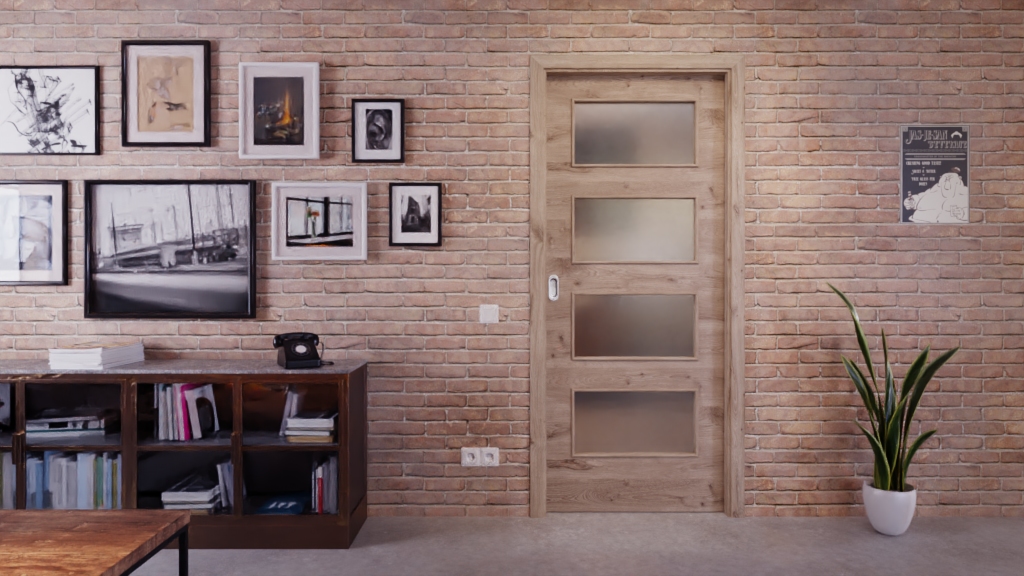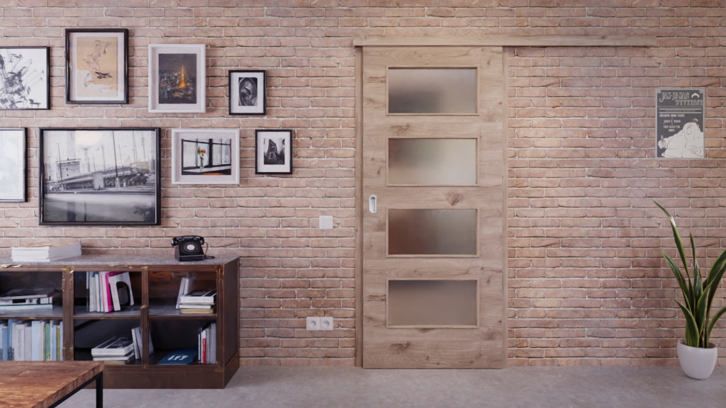 Robustne drzwi przesuwne ProLine z dębu północnego w poziomie z płytą pełnoobwodową jako rdzeń drzwi: