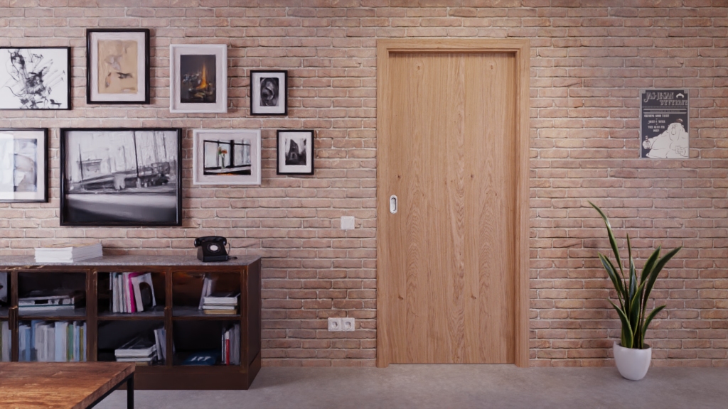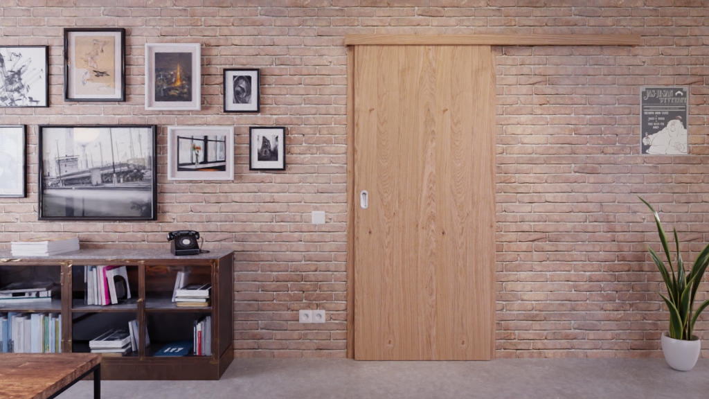 Drzwi przesuwne z forniru naturalnego z owalnym uchwytem: