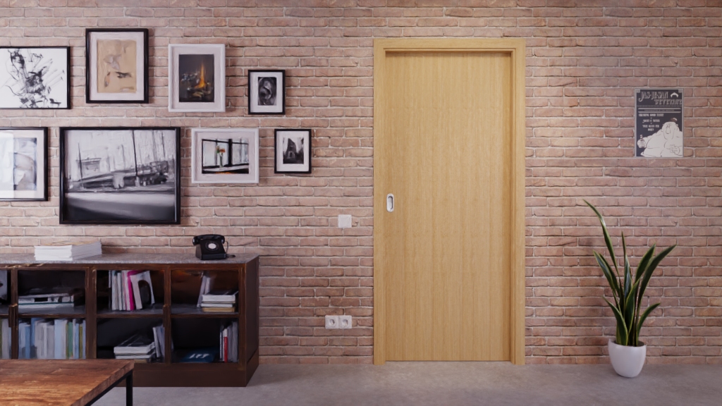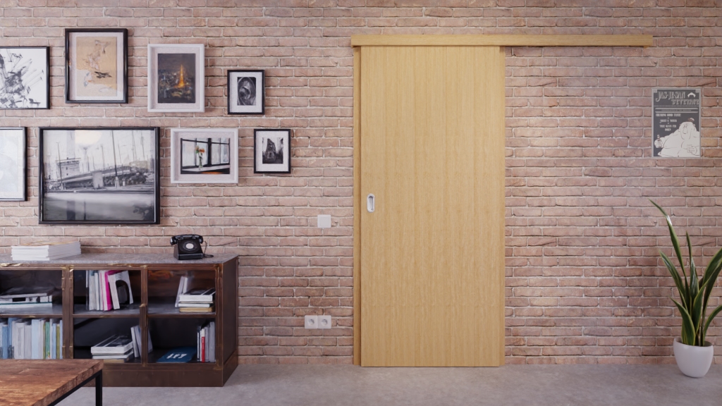 Model przesuwany pokryty prawdziwym drewnem z owalnym uchwytem: