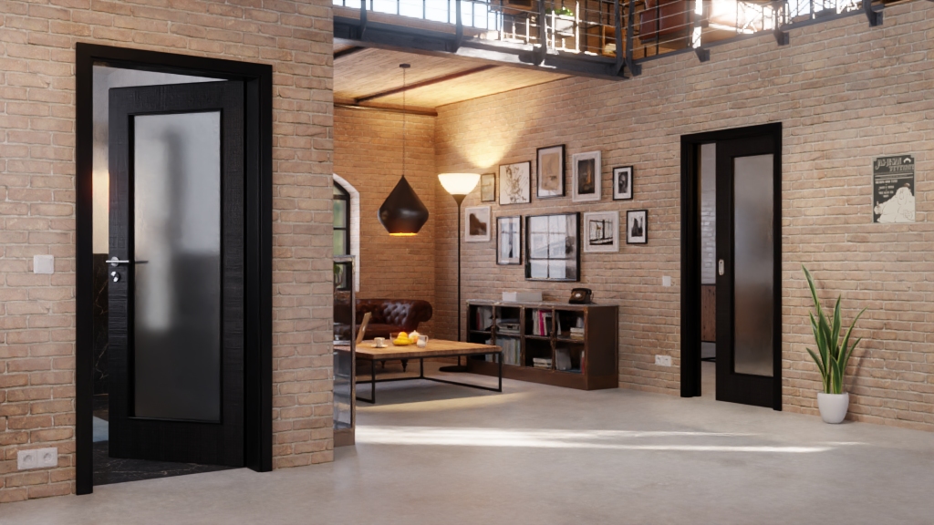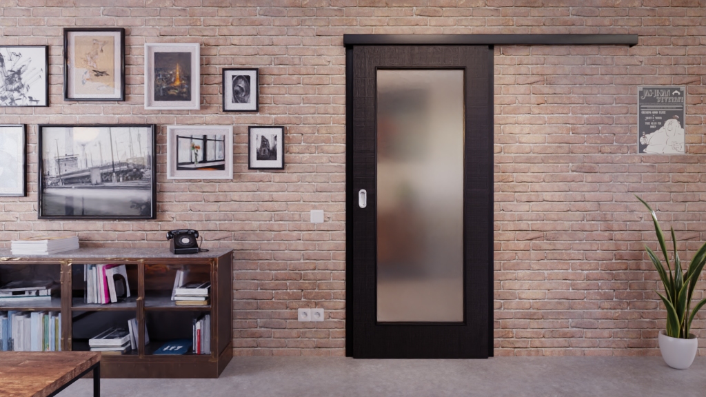Drzwi przesuwne w kolorze czarny len z LA-8 i wysoką łatwością pielęgnacji