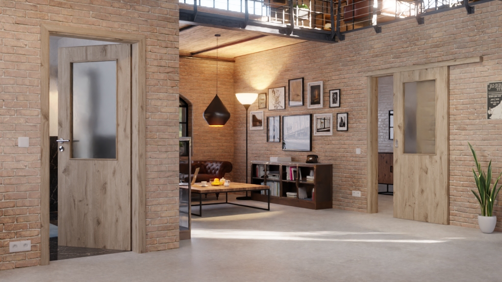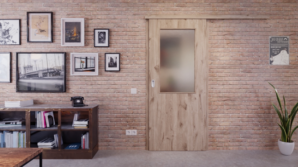 Robustne drzwi przesuwne ProLine z dębu północnego z solidną płytą pełnoobwodową: