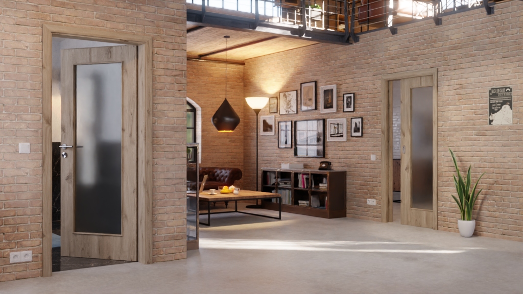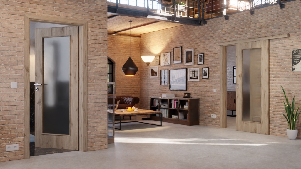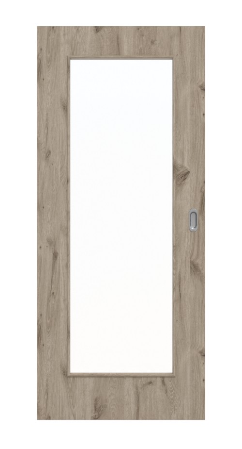 Trwałe drzwi przesuwne ProLine w północnym dębie z pełną płytą wiórową, która zapewnia stabilność: