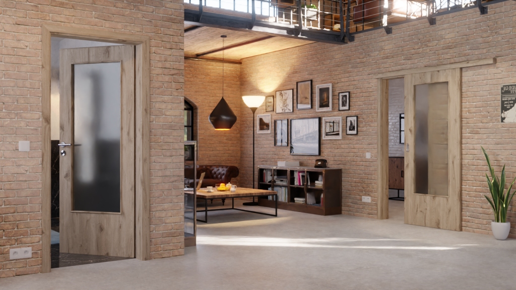Inteligentne drzwi przesuwne ProLine LA-DIN w kolorze dąb północny z wpustem dolnym