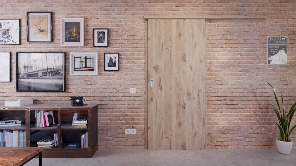 Trwałe drzwi przesuwne ProLine w północnym dębie z stabilizującą płytą wiórową: