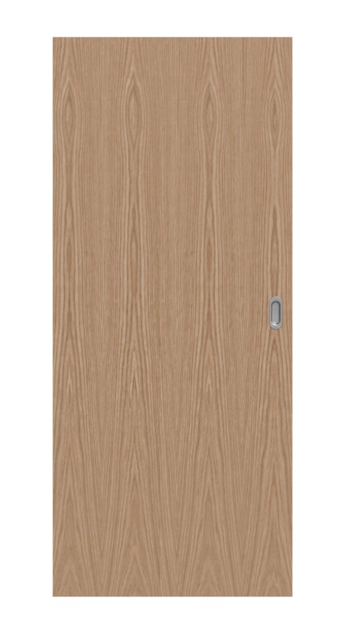 Skrzydło drzwiowe jest wzmocnione odporną na uderzenia płytą wiórową. Dzięki dołączonemu prowadzeniu podłogowemu skrzydło drzwiowe porusza się płynnie podczas użytkowania. Owalny uchwyt idealnie dopełnia wygląd skrzydła drzwiowego z forniru naturalnego.