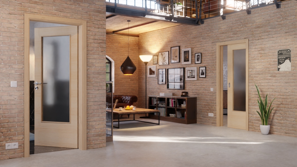 Drzwi wykończone fornirem drewnianym dla oszczędności miejsca w domu: