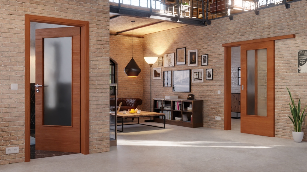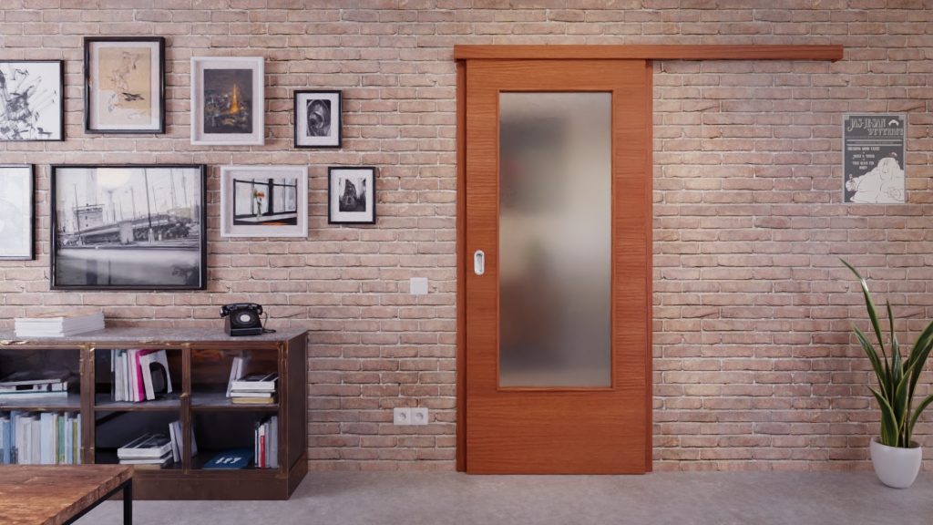 Drzwi przesuwne z okleiną drewnianą dla oszczędności miejsca w domu: