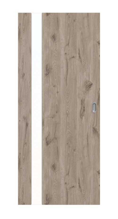 Widoczne słoje tworzą niepowtarzalny design. Do naturalnej powierzchni dołącza elegancka listwa świetlna na całej wysokości skrzydła drzwiowego po stronie zawiasów.