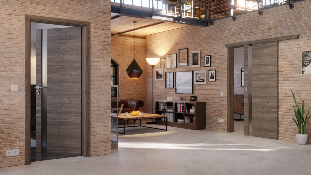 Dzięki ciemnemu odcieniowi drewna w układzie poziomym stworzysz prawdziwą oazę komfortu. Po stronie zamka znajduje się długie pasmo świetlne.