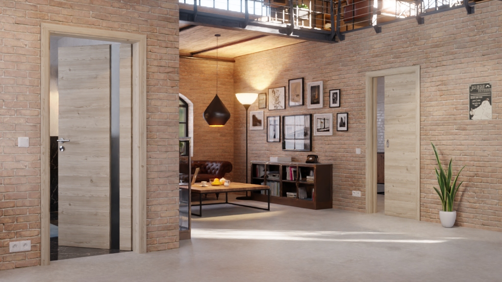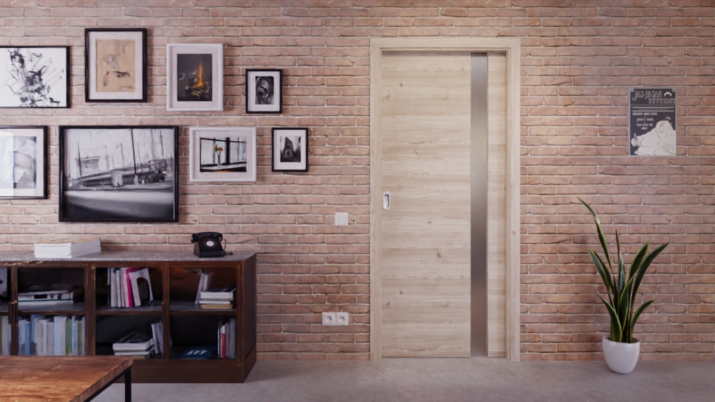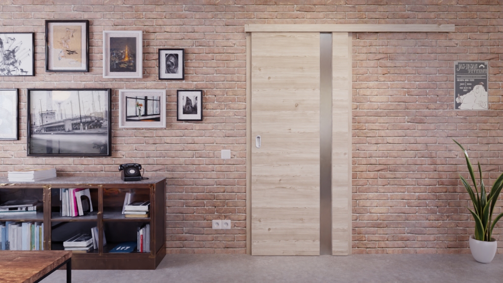 Łatwe w pielęgnacji drzwi przesuwne Pure 1 w kolorze modrzew jasny wzdłuż