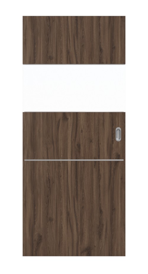 Ciemy kolor drewna emanuje spokojem i tworzy przytulną atmosferę. W środku znajduje się aplikacja ze stali nierdzewnej biegnąca w poprzek skrzydła drzwi. Zapewnia to indywidualny i elegancki design. Dzięki pasowi świetlnemu na wysokości oczu do Twojego domu wpada dużo światła.