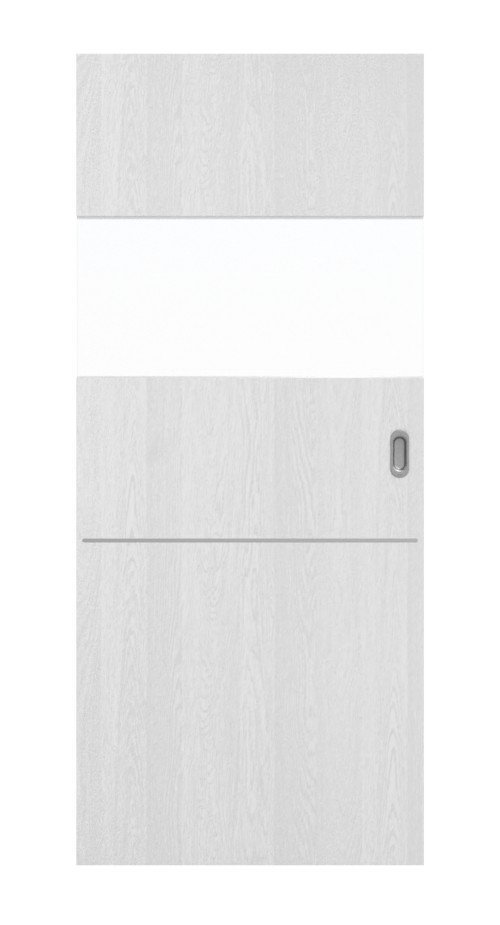 HÖRMANN drzwi przesuwne Pure 2 dąb biały Duradecor DesignLine z przeszkleniem wzdłuż ze zlicowaną listwą Plain 79-7
