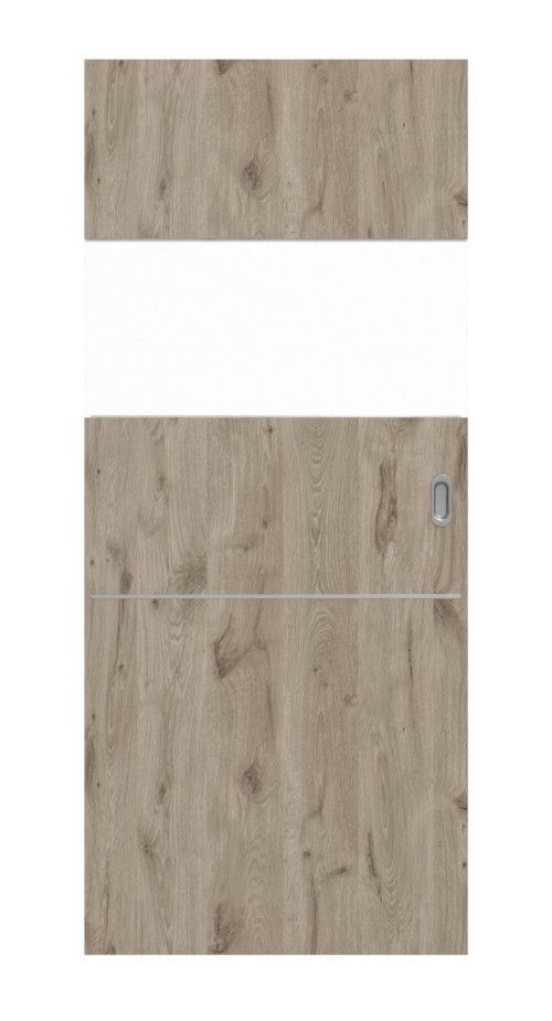 Widoczne słoje tworzą unikalny panel drzwiowy. W środku znajduje się aplikacja ze stali nierdzewnej, która biegnie w poprzek panelu drzwiowego. Zapewnia to indywidualny i elegancki design. Dzięki pasowi świetlnemu na wysokości oczu do wnętrza wpada dużo światła.