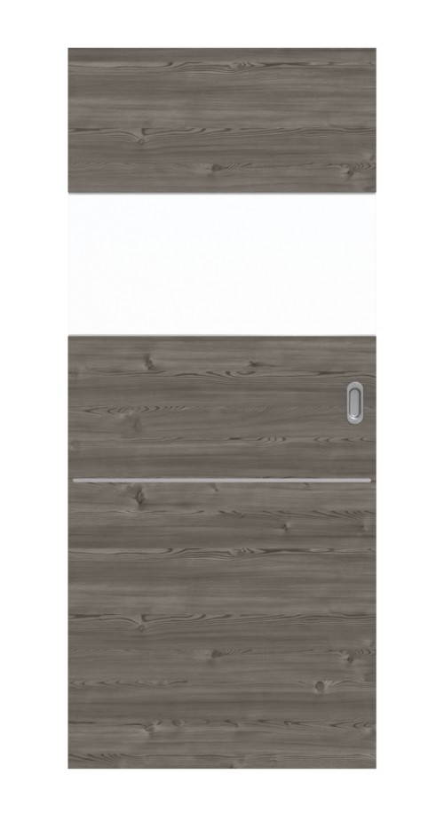 Ciemny odcień drewna w poziomej optyce sprawia, że Twój dom staje się relaksującym miejscem do odpoczynku. Dzięki pasowi świetlnemu na wysokości oczu do wnętrza wpada dużo światła. Aplikacja ze stali nierdzewnej na środku skrzydła drzwi nadaje modelowi elegancki akcent.