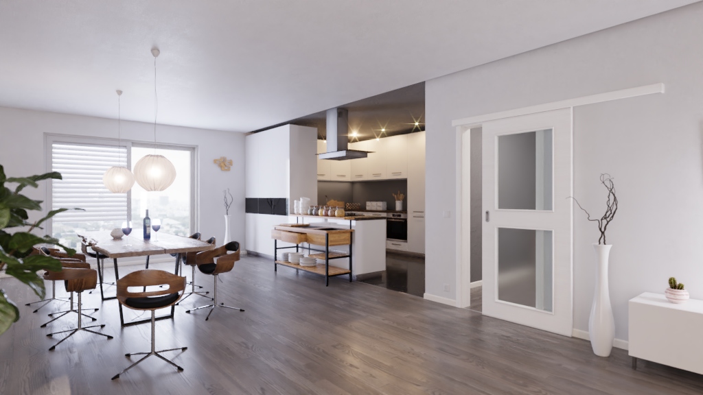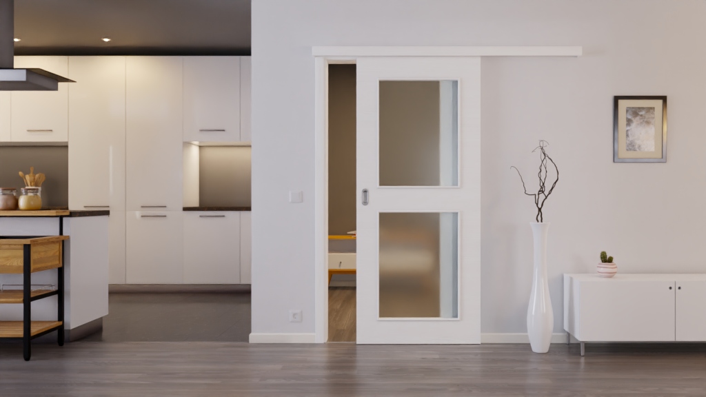 Trwałe drzwi przesuwne ProLine w szczotkowanej bieli poziomej z stabilizującą płytą pełno-wiórową: