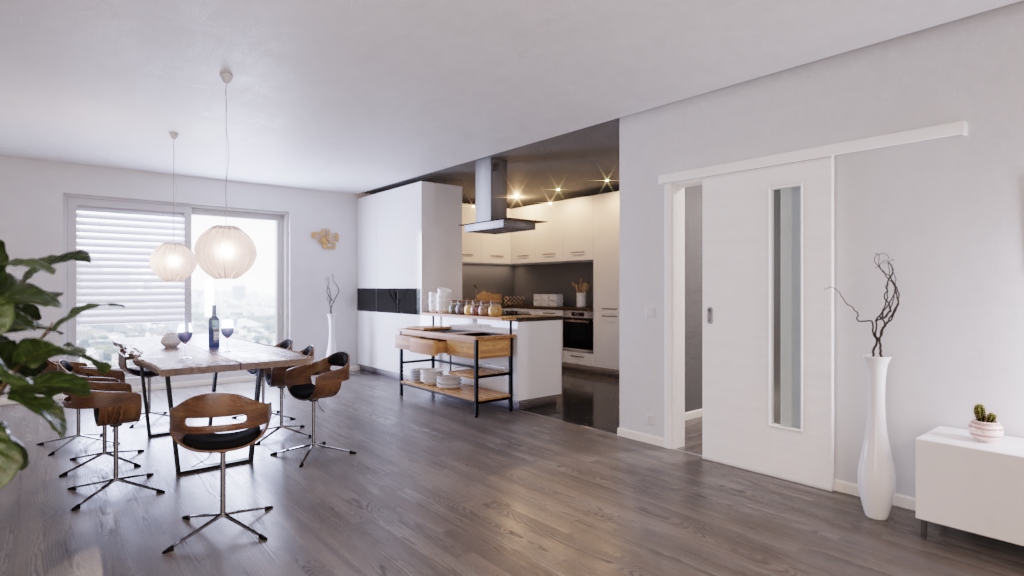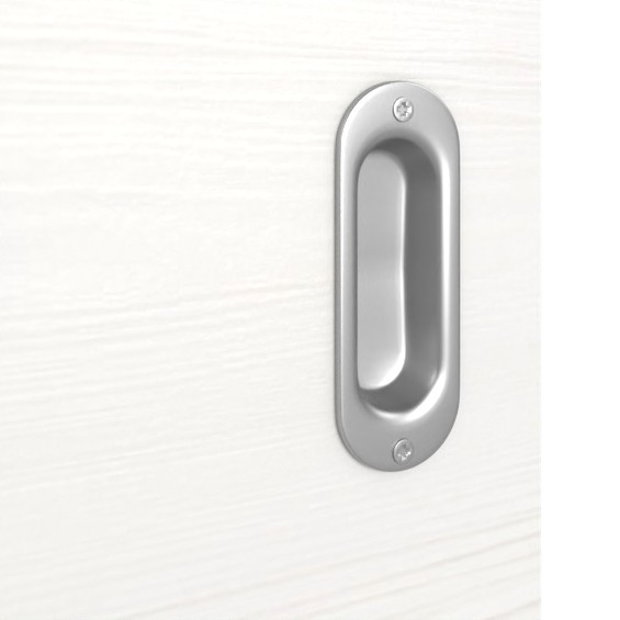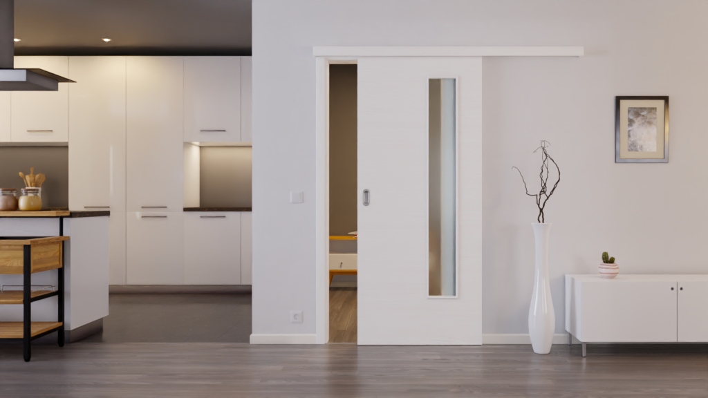 Trwałe drzwi przesuwne ProLine w szczotkowanej bieli poziomej z pełną płytą, która zapewnia stabilność: