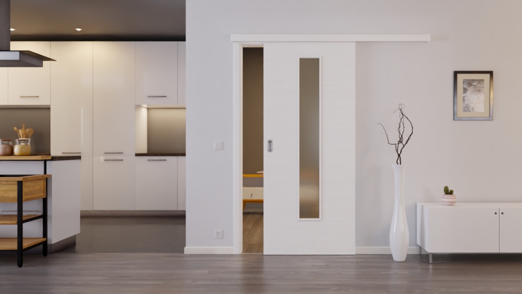 Robustne drzwi przesuwne ProLine w szczotkowanej bieli z wysokiej jakości płytą pełno-wiórową: