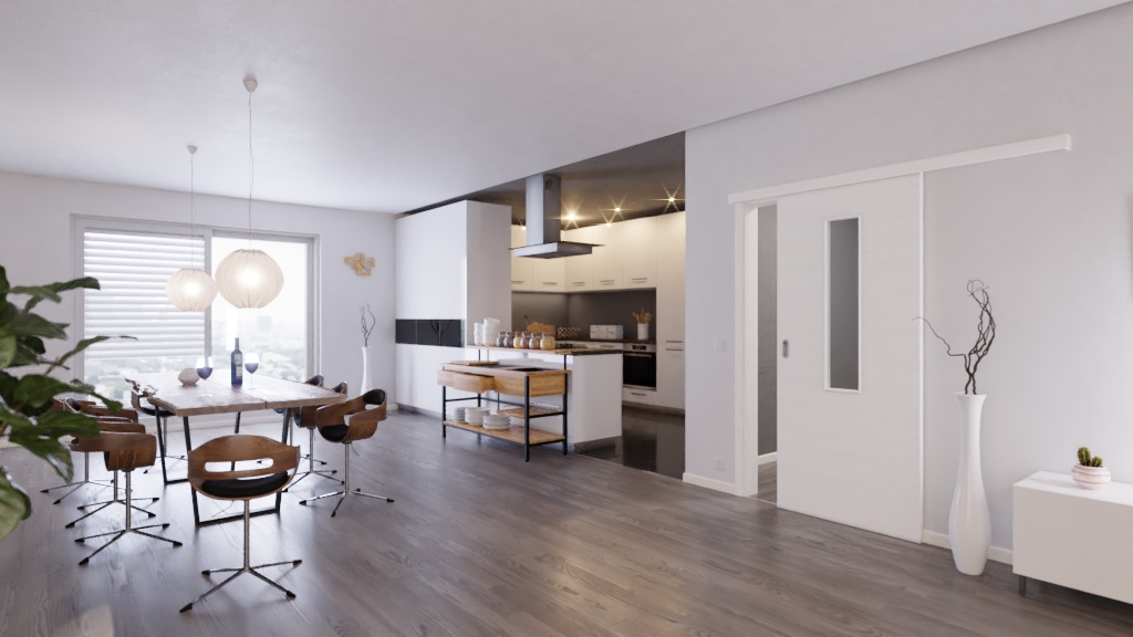 Robustne drzwi przesuwne ProLine w szczotkowanej bieli poziomej z pełną płytą wiórową: