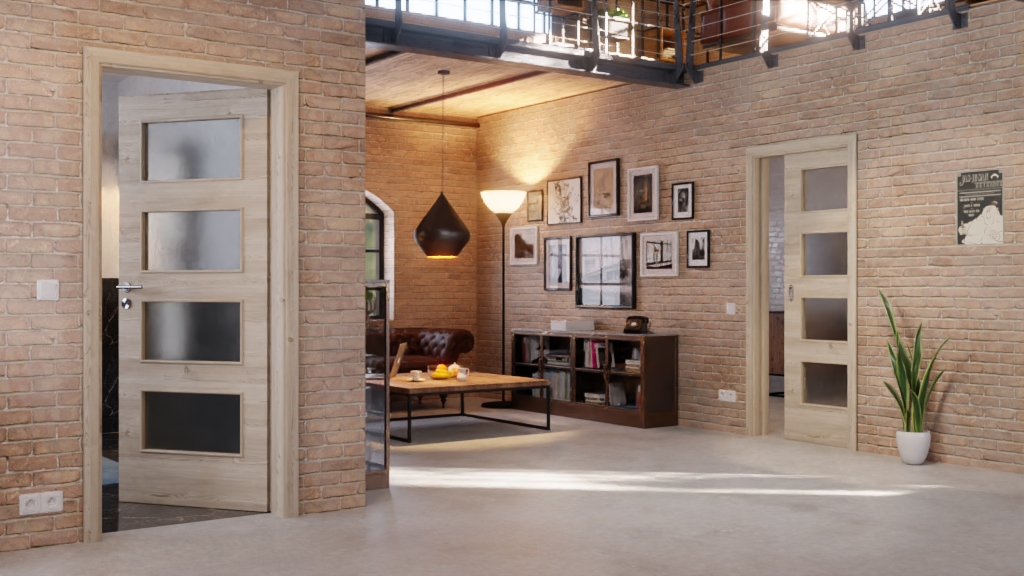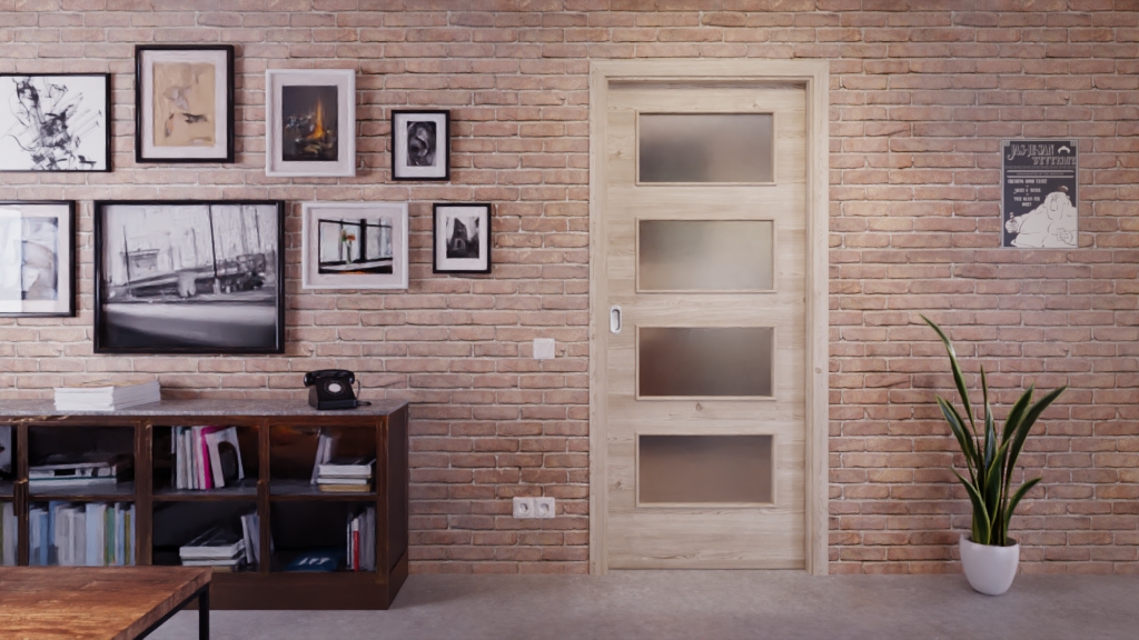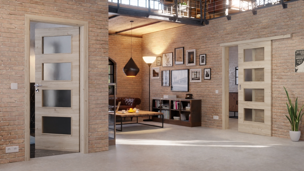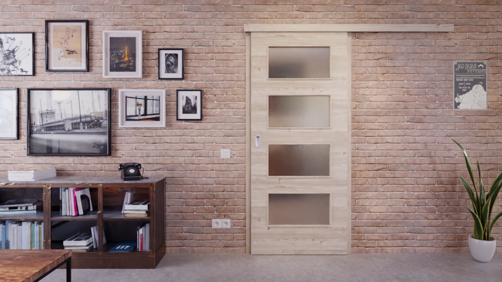 Codzienna, odporna na zużycie drzwi przesuwne ProLine w jasnym, szczotkowanym świerku z wysokiej jakości pełnopanelową płytą: