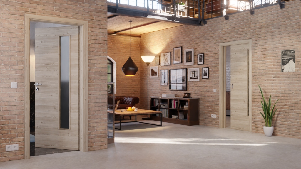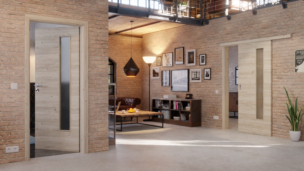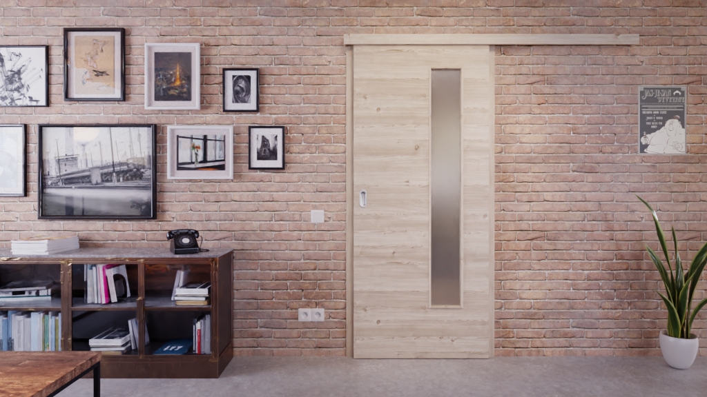 Trwałe drzwi przesuwne ProLine w jasnym szczotkowanym modrzewiu poziomo z solidną płytą wiórową: