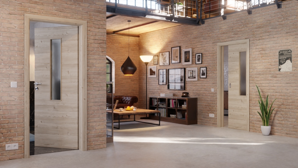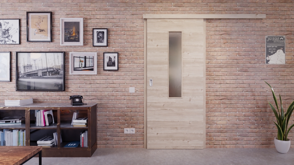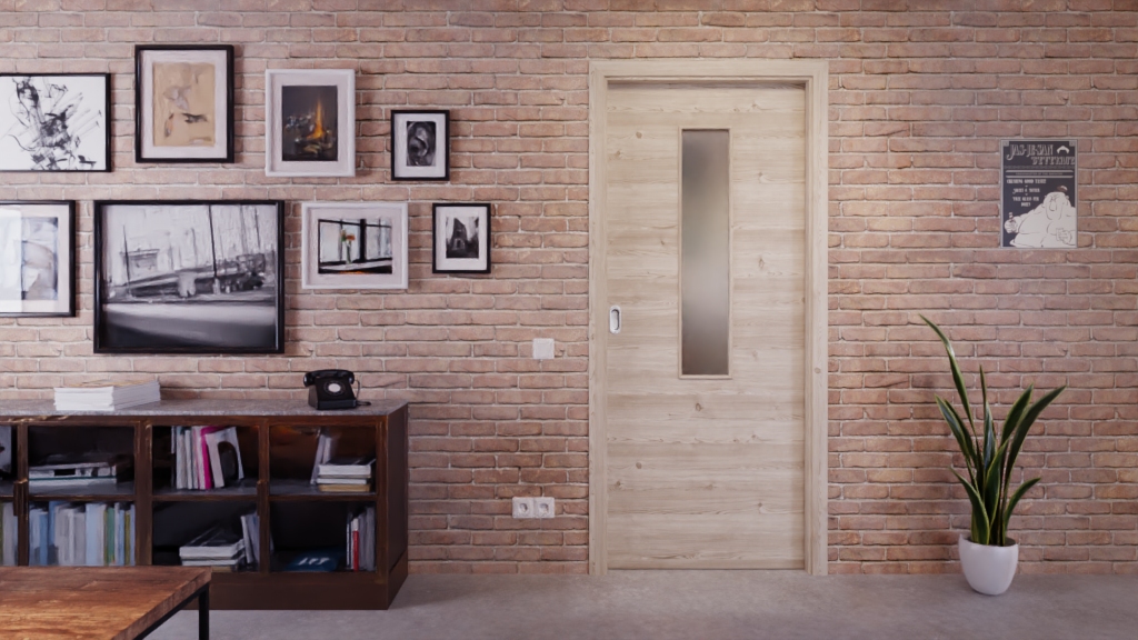 Codzienna, odporna na zużycie drzwi przesuwne ProLine w jasnym, szczotkowanym świerku z wysokiej jakości płytą pełnoobwodową: