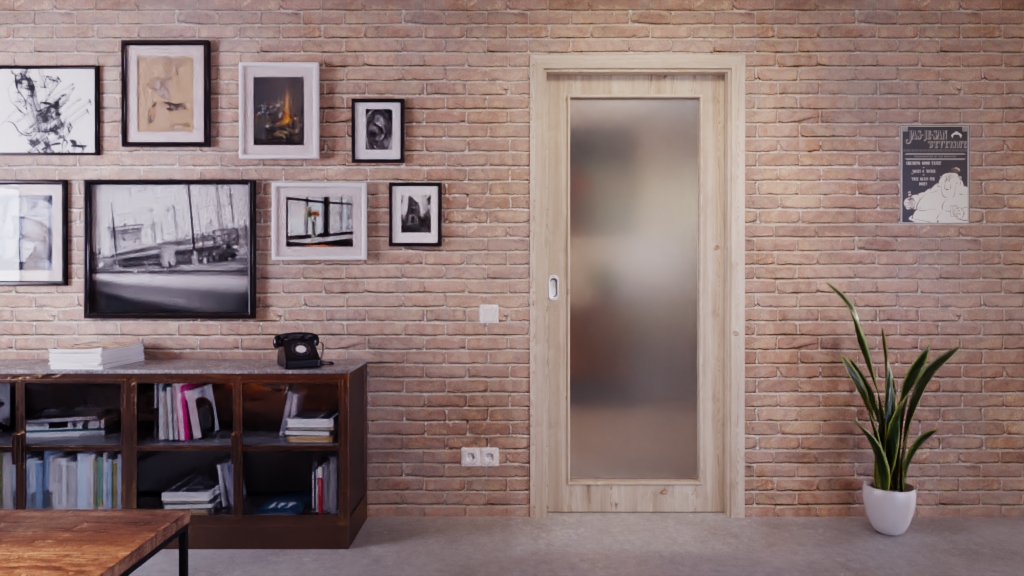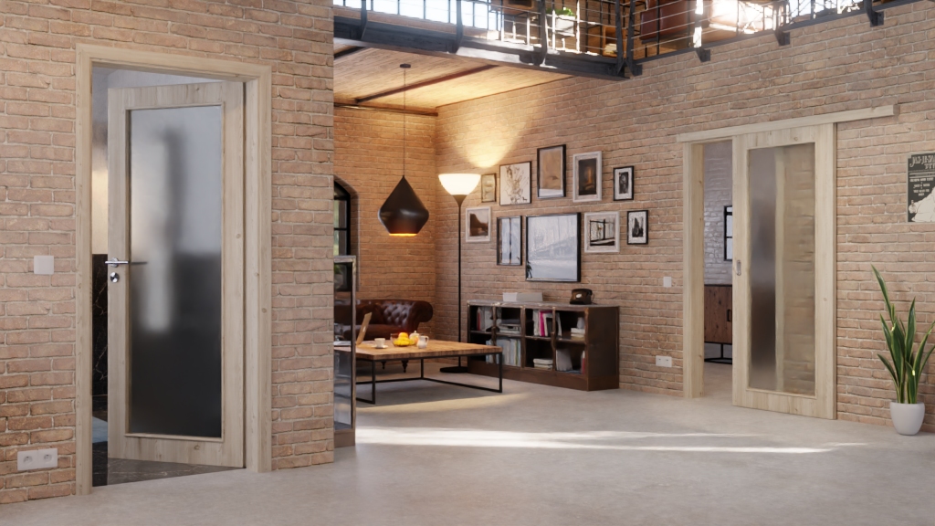 Trwałe drzwi przesuwne ProLine w jasnym szczotkowanym modrzewiu z płytą pełno-włóknistą jako rdzeń drzwi: