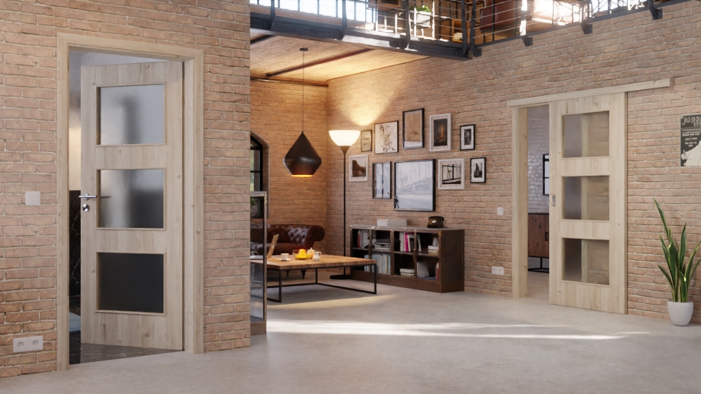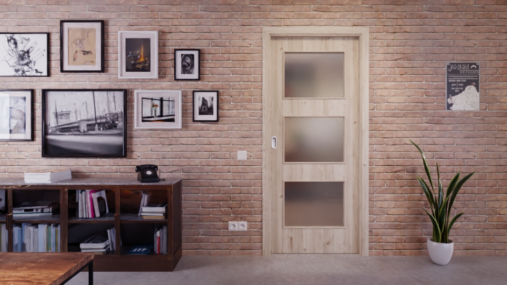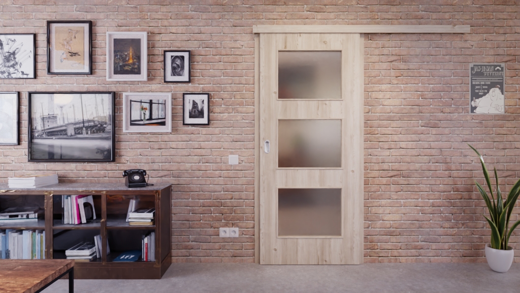Codzienna, odporna na zużycie, przesuwna drzwi ProLine w jasnym, szczotkowanym świerku, w tym płyta pełnoobwodowa: