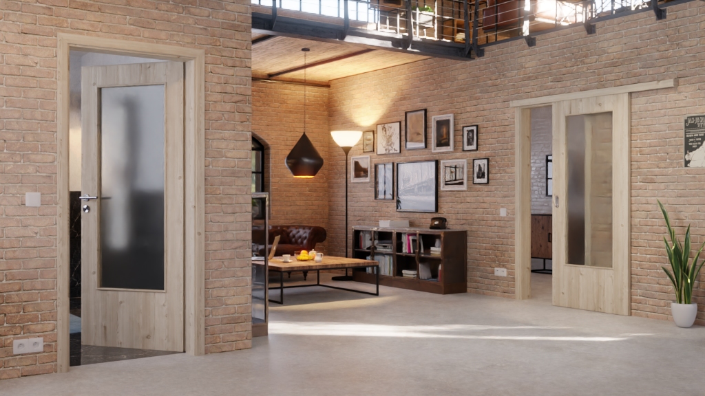 Codzienna, odporna na zużycie ProLine drzwi przesuwne w jasnym szczotkowanym modrzewiu z stabilizującą płytą pełno-włóknistą: