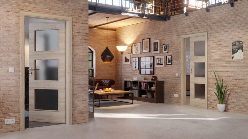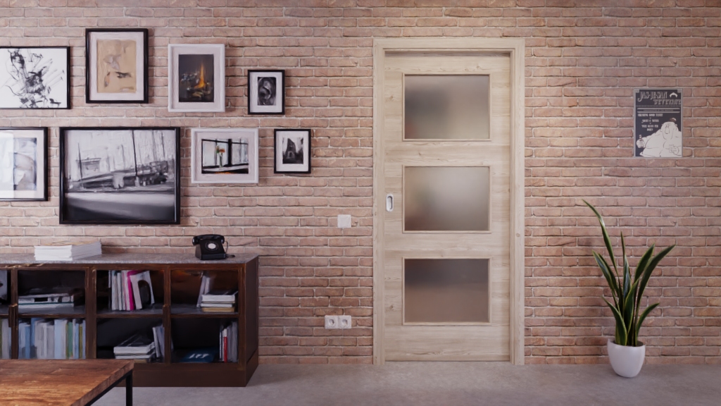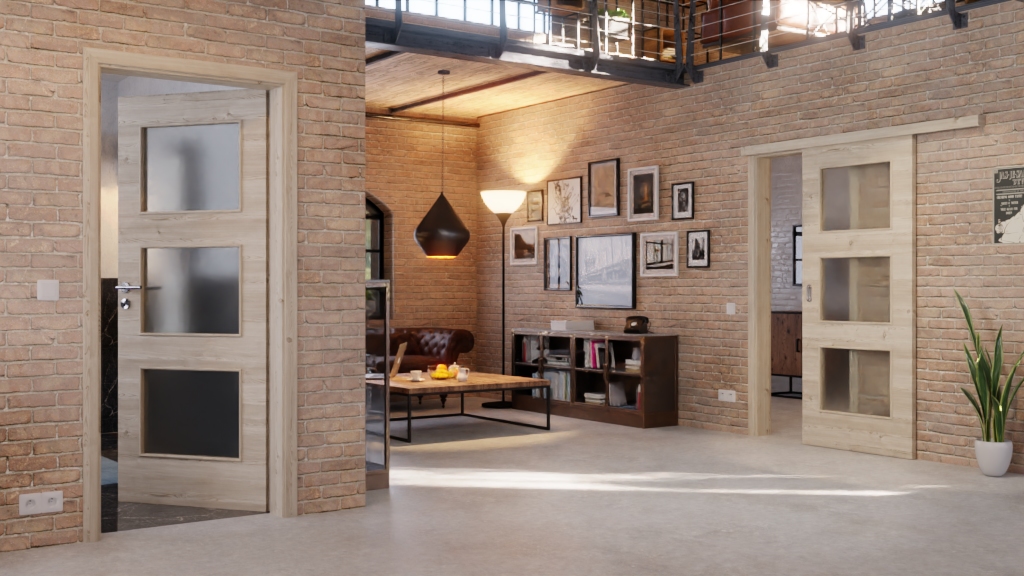 Codzienna, odporna na zużycie drzwi przesuwne ProLine w jasnym, szczotkowanym świerku poziomym z solidną płytą wiórową: